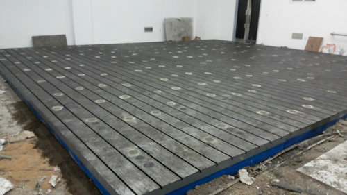 為沈陽客戶生產(chǎn)的設備運行試驗平臺,T型槽平臺,有2000*4000mmT型槽平臺拼接組成.采用頂絲和地腳螺栓的調整固定方式.